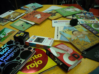 conteúdo para o adulto poder transmitir;"O Porquinho Victor" um livro com uma ilustração maravilhosa mas com uma mensagem para o qual o adulto deve estar desperto...;para além de outras gostámos do"Pinto Careca""Catarina Sem Rumo Pelo Mundo" que em tom de brincadeira todos os presentes se envolveram...Para terminar leu a história:"Um Dia..."
